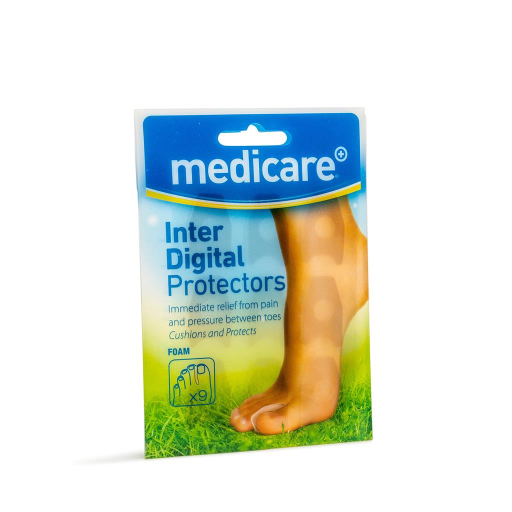 Medicare Inter-Digital Protectors Foam (9 Pack) Reduce Pressure and Friction Between Toes • Medicare Inter-Digital Protector Cushions reduce pressure and friction between toes • Cushions and protects corns • Easy to compress in order to make comfortable in shoe • Ultra soft foam material • Discreet
